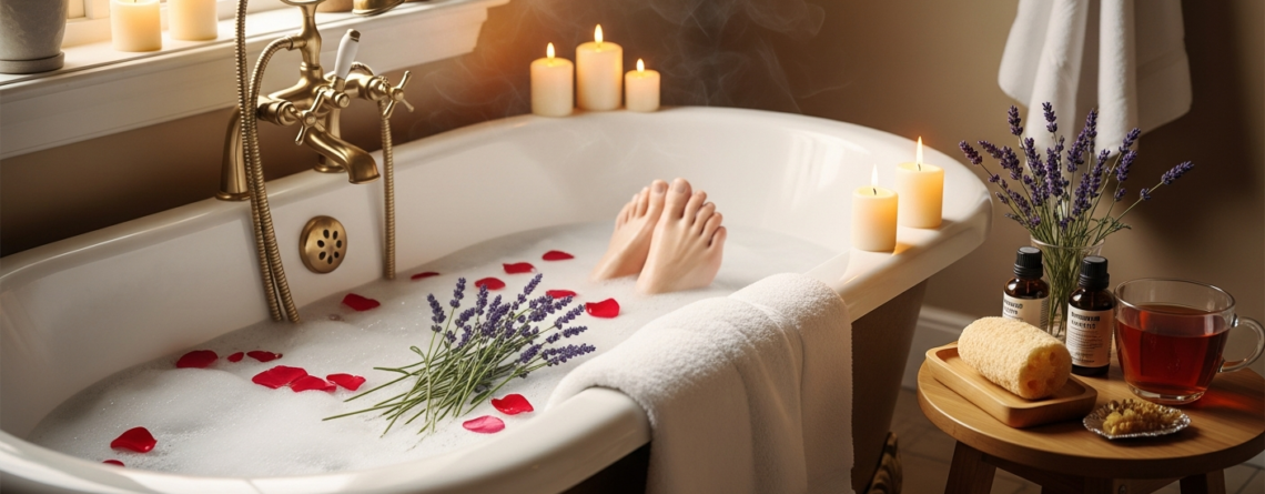 - Stresszoldás: Maga a rituálé, a meleg víz és a kellemes illatok nyugtatóan hatnak az idegrendszerre, segítve a relaxációt.