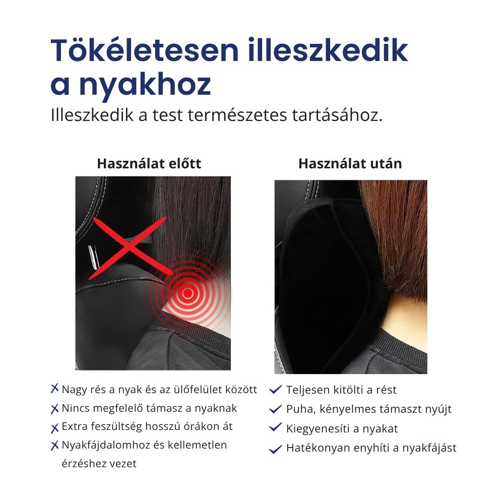 - Sokoldalú felhasználhatóság – alkalmas autóhoz, utazáshoz, irodai munkához vagy otthoni pihenéshez, amikor az ülés vagy szék nem nyújt elegendő támaszt a nyaknak.