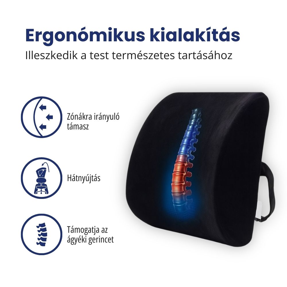 Támassza meg hátát, javítsa testtartását és üljön fájdalom nélkül a Lumbaris ergonomikus háttámasztó párnával, amelyet az optimális ágyéki alátámasztásra terveztek otthon, az irodában vagy utazás közben.