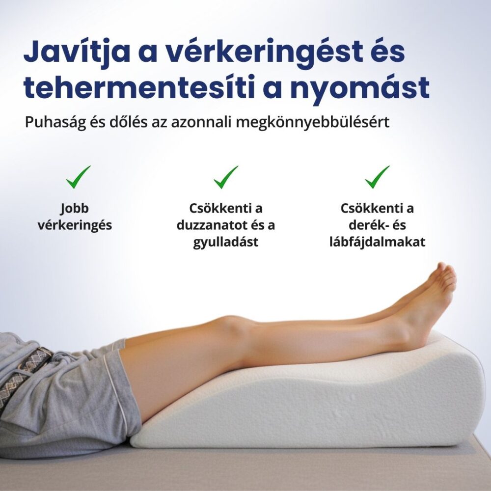 Ez az emelőpárna csökkenti a duzzanatot, elősegíti a gyógyulást, és javítja a keringést – maximális kényelmet és gyorsabb felépülést biztosítva.