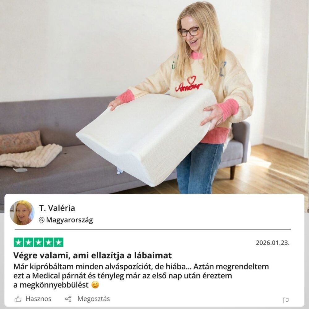 Ezt az Ortopédiai Lábpárnát a lábam felpolcolásához vettem a gyógyulás idejére, és tökéletesen bevált! Imádom a kialakítását, mert a dőlésszögének köszönhetően a lábam magasabban van, mint a többi testrészem, és mégis kényelmes marad. Nagyon tartós, és külön tetszik, hogy a huzata mosható.