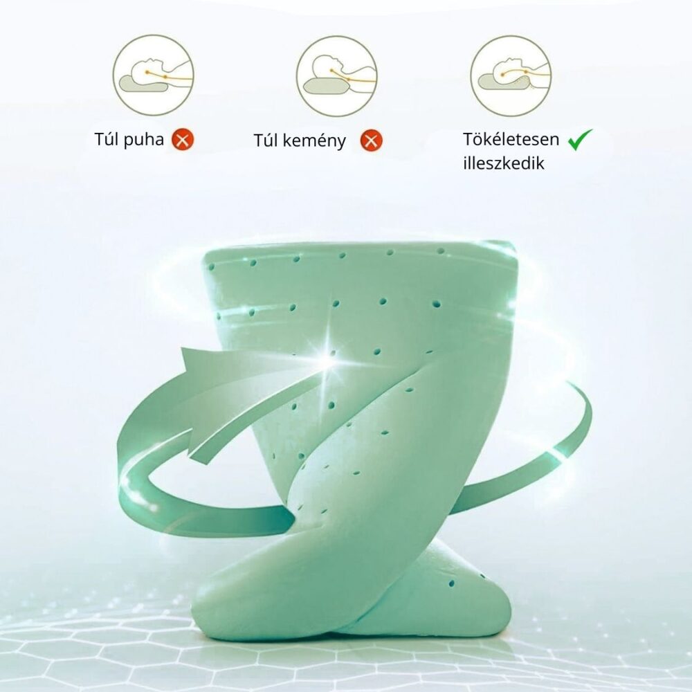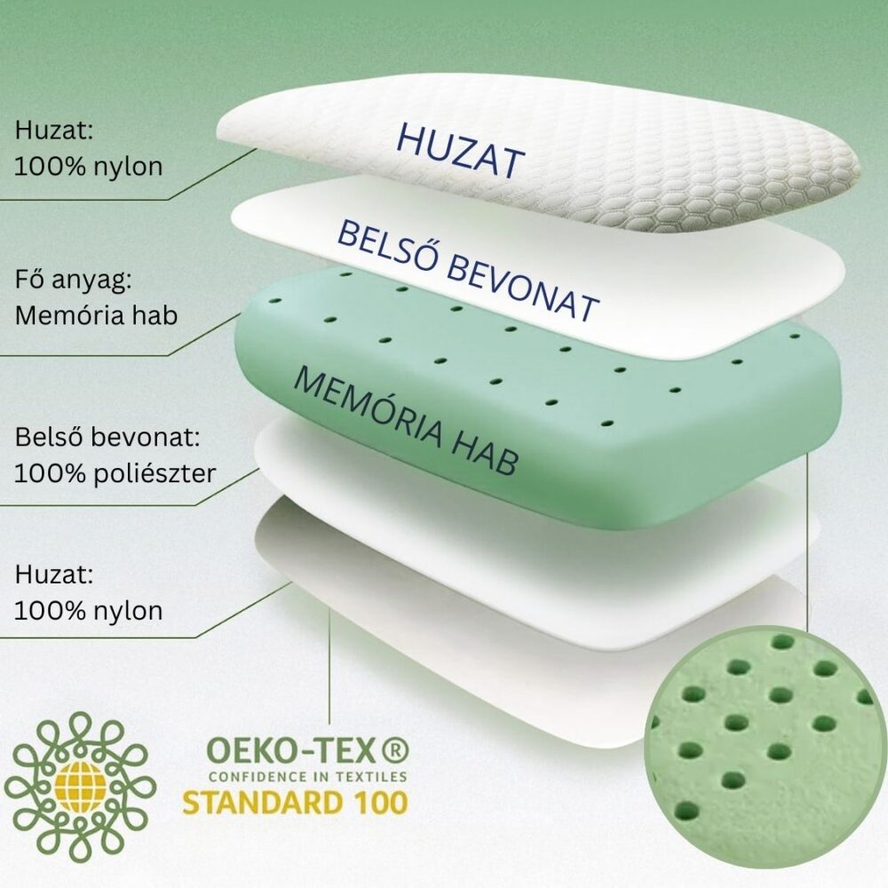 Teljes fej- és válltámasz, memóriahab és természetes anyagok – a kényelmes, egészséges alvásért nyak- és vállfájdalmak nélkül. Ergonomikus kialakítás, memóriahab és természetes ellazulás a pihentető, fájdalommentes alvásért.