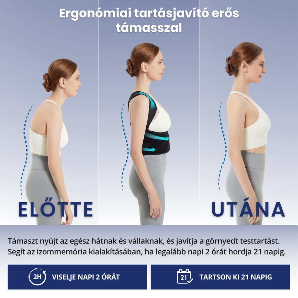 Rendszeres viselés mellett fokozatosan megtanítja a testet a hát és a vállak helyes tartására.